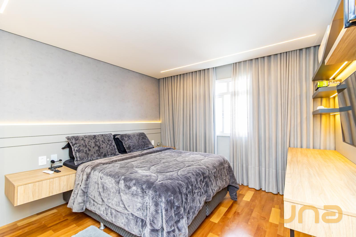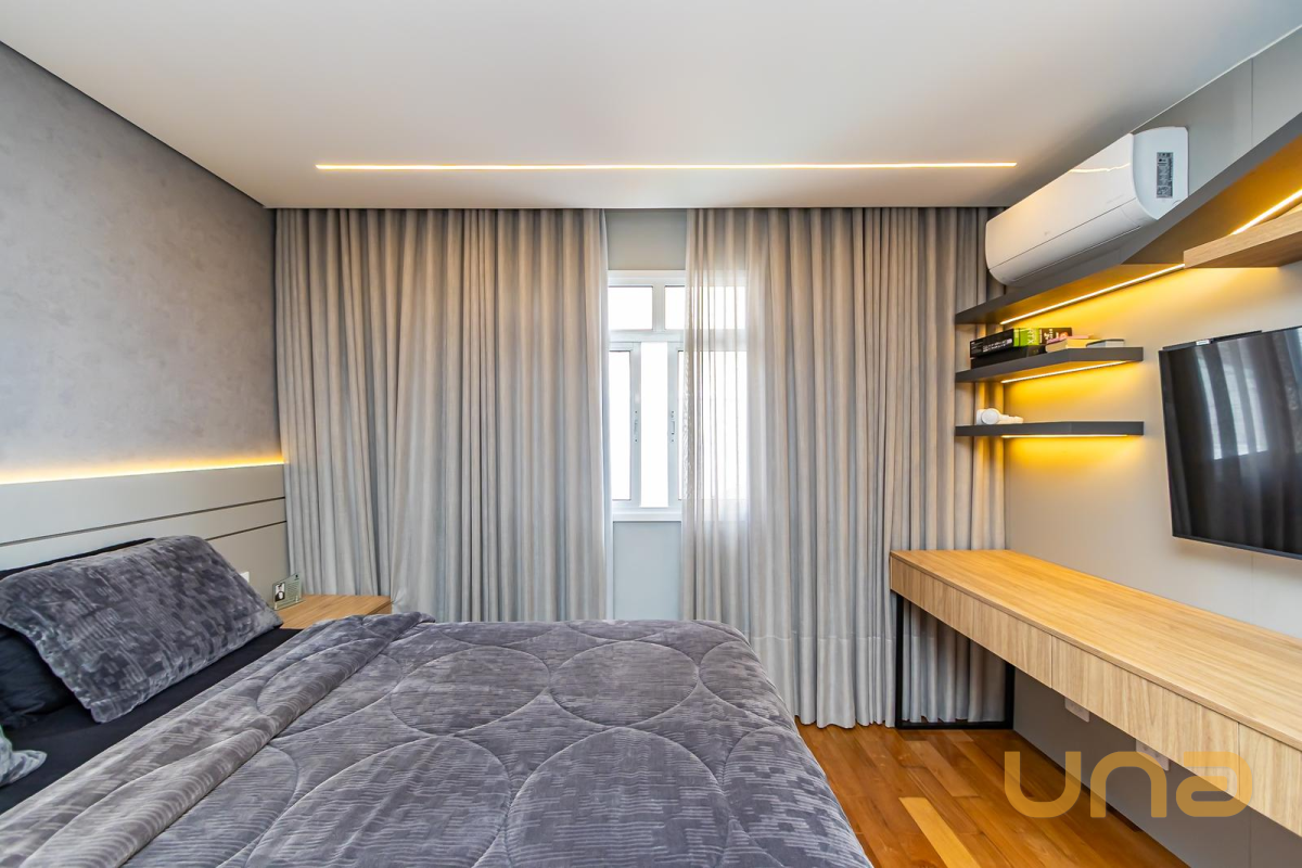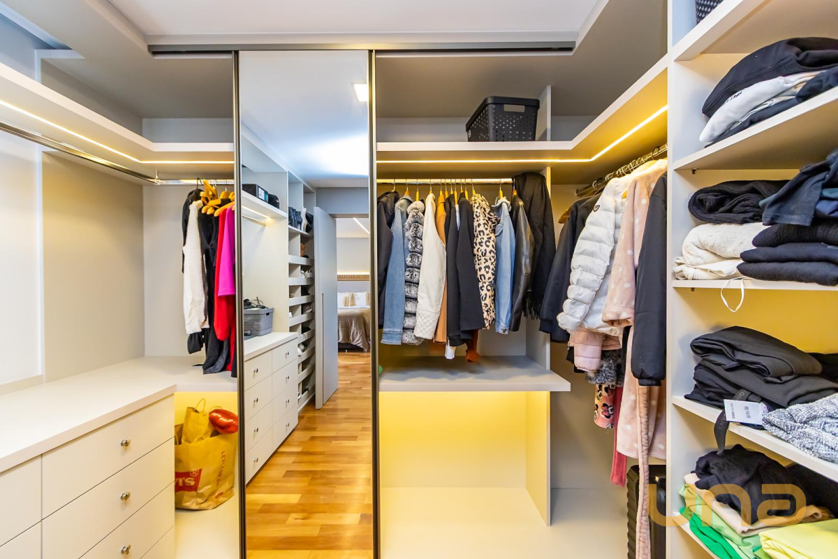 * Suíte 1 com armários, escrivaninha, penteadeira camarim com espelho de LED e banheiro privativo