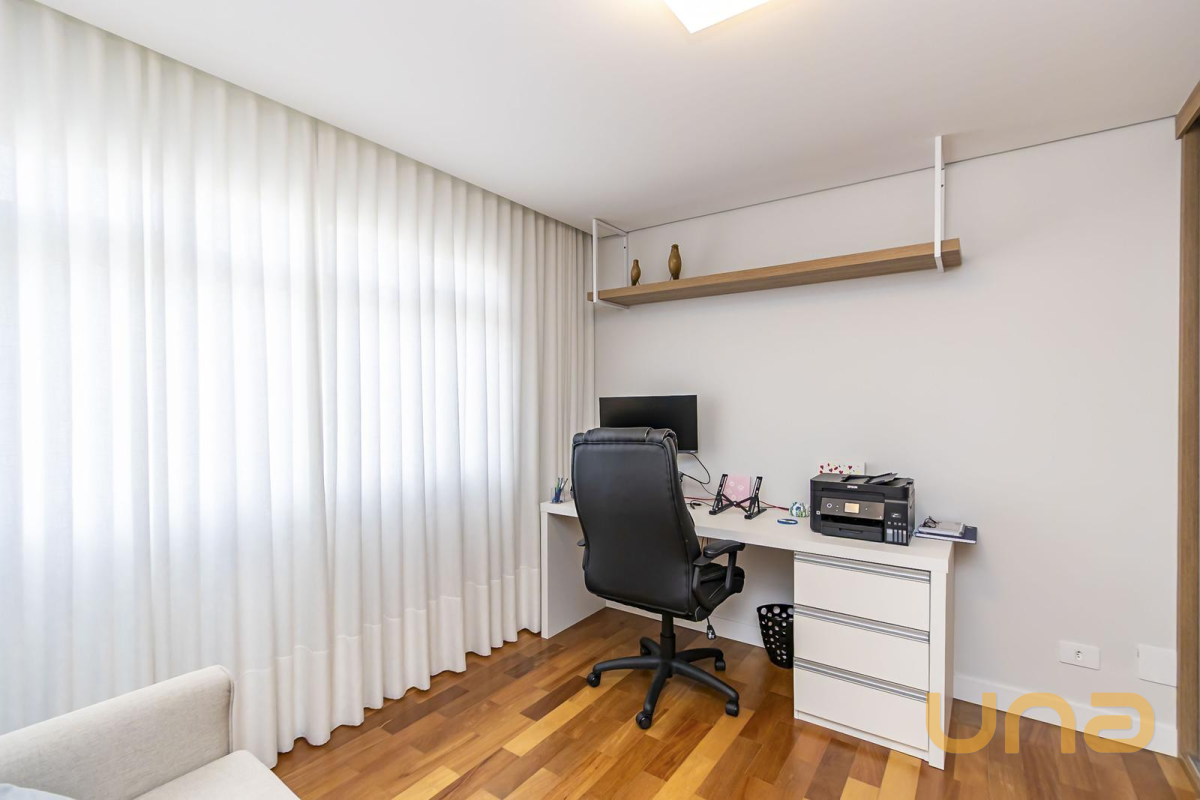 * Escritório mobiliado, podendo ser utilizado como quarto adicional, equipado com sofá-cama de casal e guarda-roupa sob medida