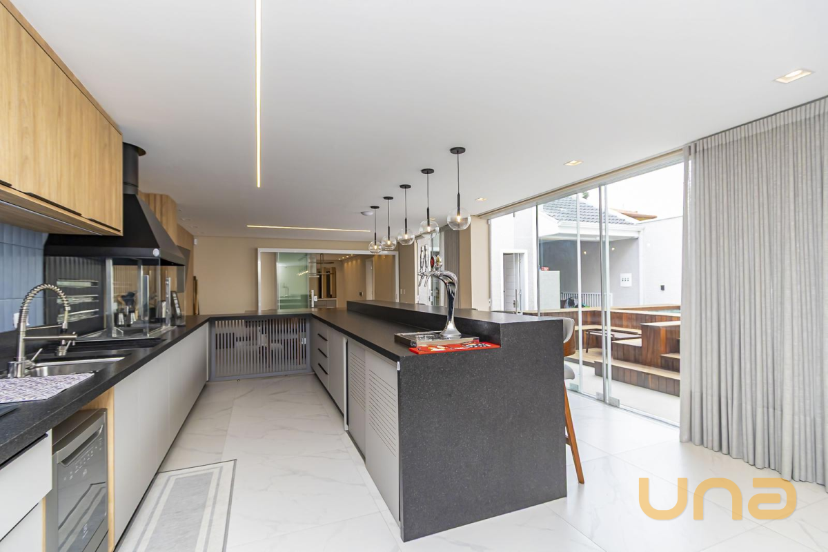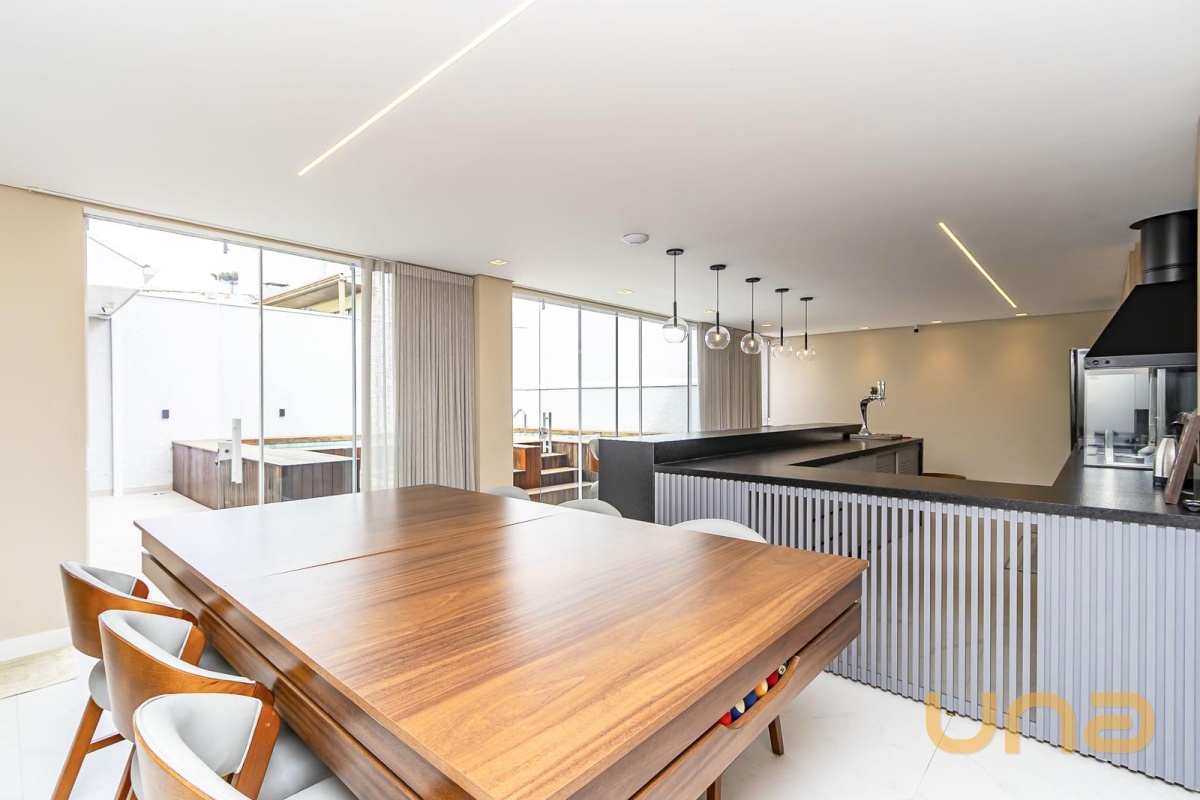 * Espaço gourmet completo, com armários planejados, cooktop, coifa, cervejeira, freezer, chopeira com motor, lava-louça, ampla bancada em granito com banquetas e mesa de jantar/bilhar com 6 cadeiras.