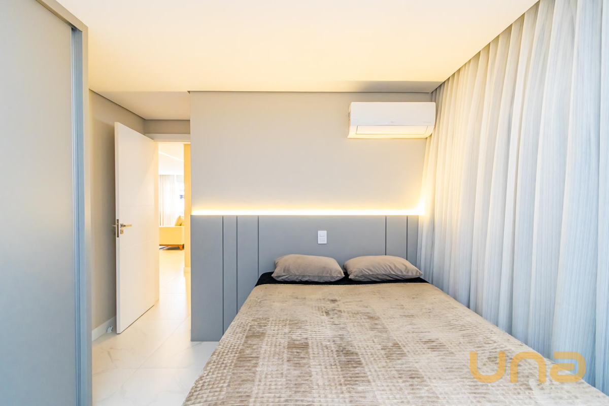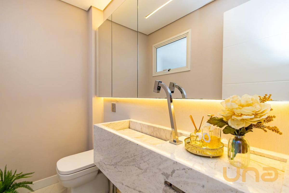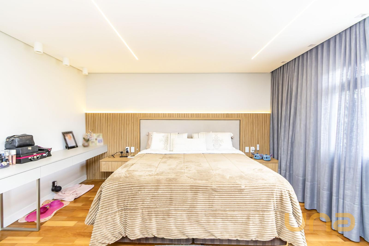 * Suíte máster com closet, penteadeira camarim com espelho de LED e banheiro com cuba dupla e hidromassagem