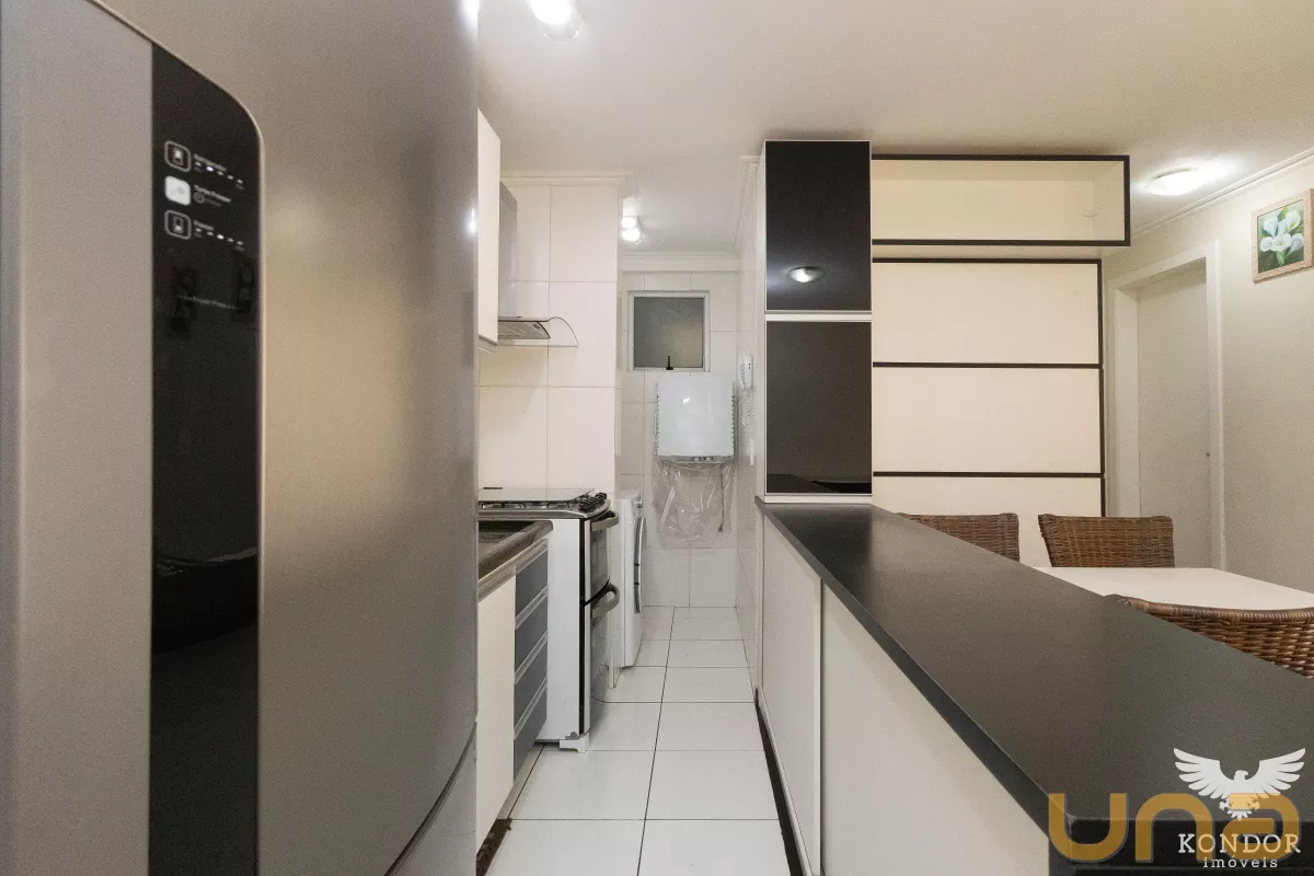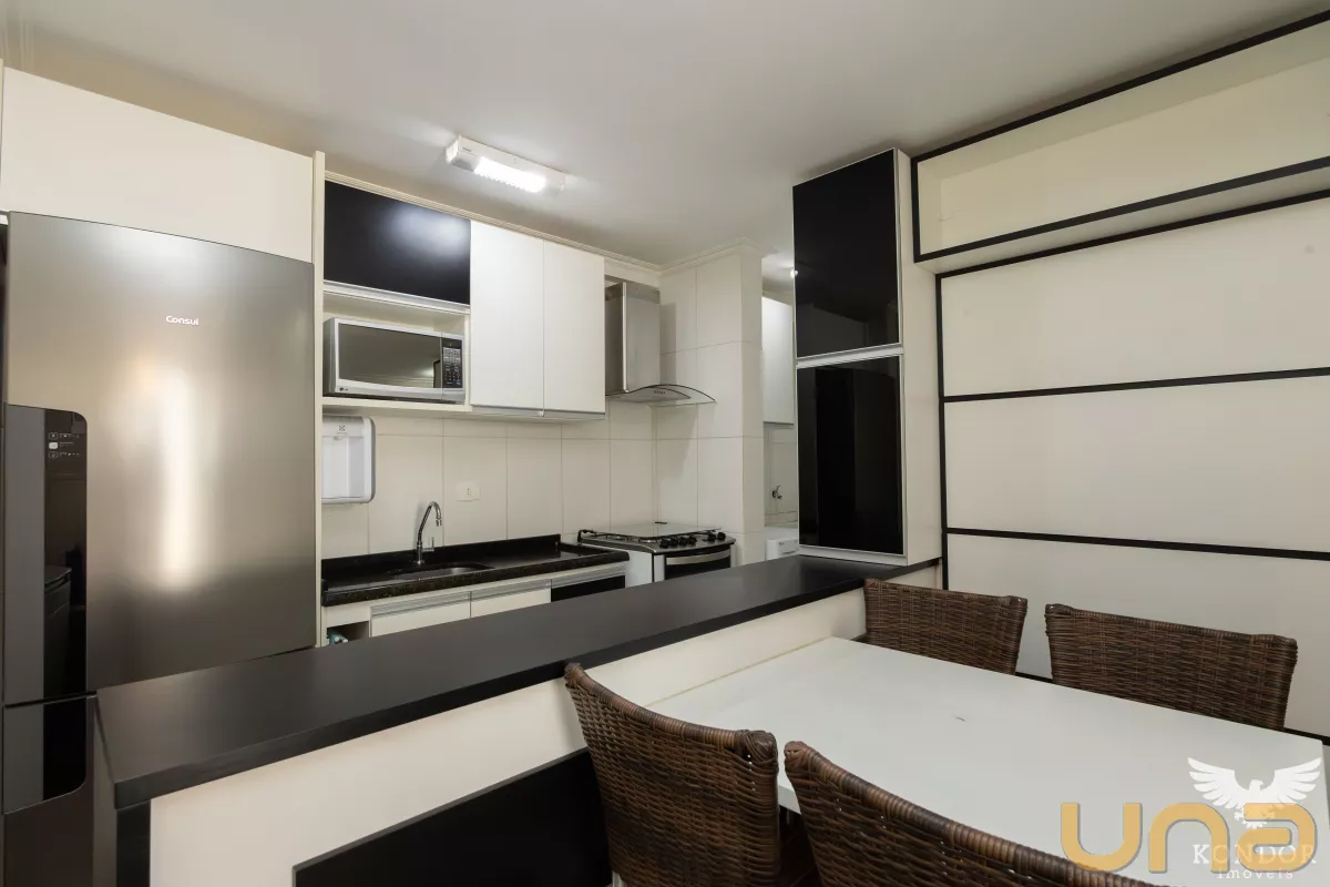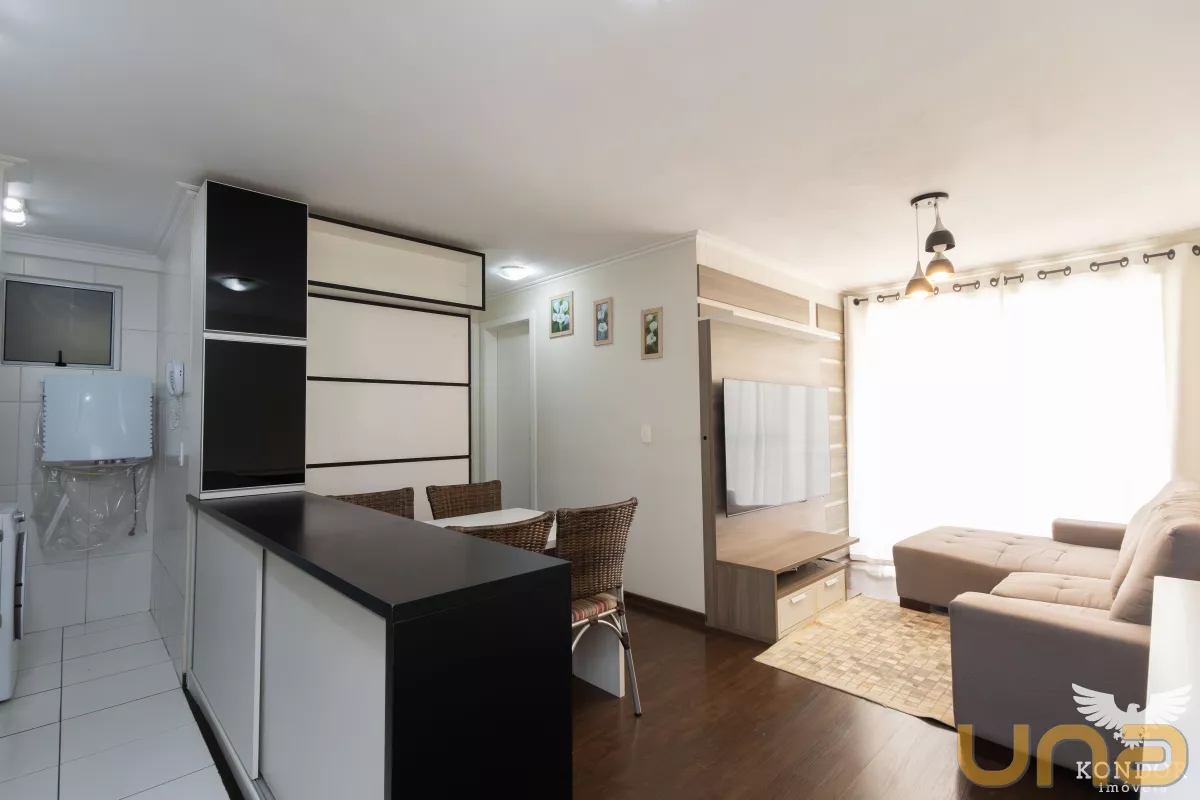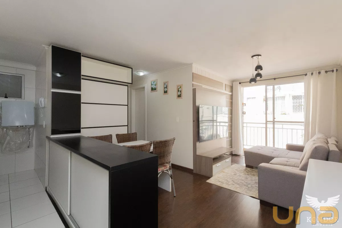 A sala de estar, jantar e cozinha formam um ambiente prático e acolhedor, perfeito para o dia a dia.