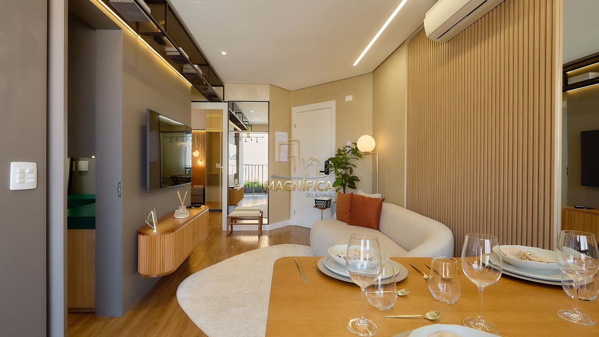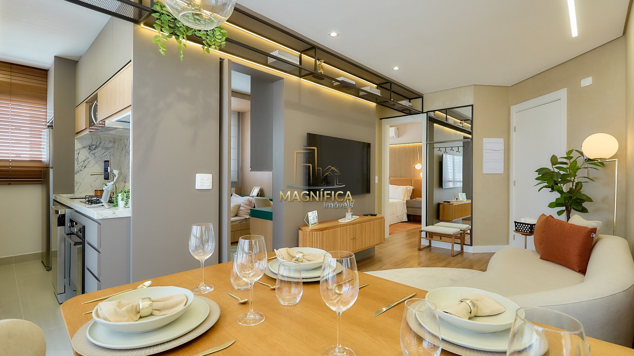 • Sala integrada com cozinha, área gourmet e sacada, proporcionando um ambiente moderno e funcional