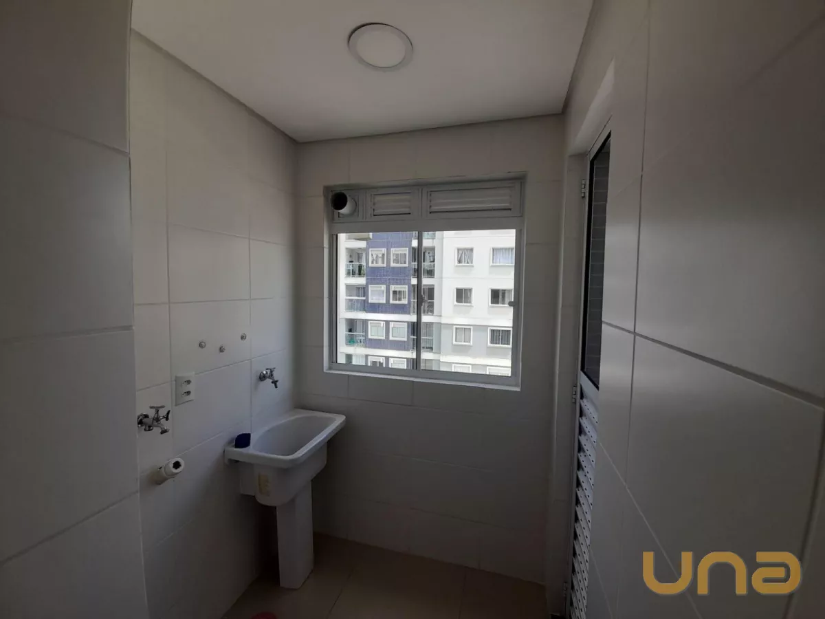 Área de serviço separada da cozinha, com tanque e ampla sacada com churrasqueira a carvão.