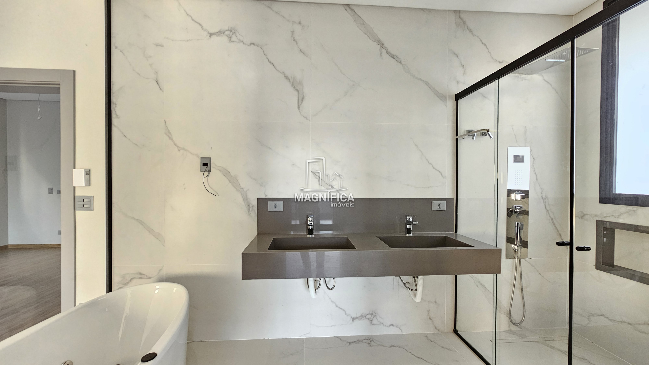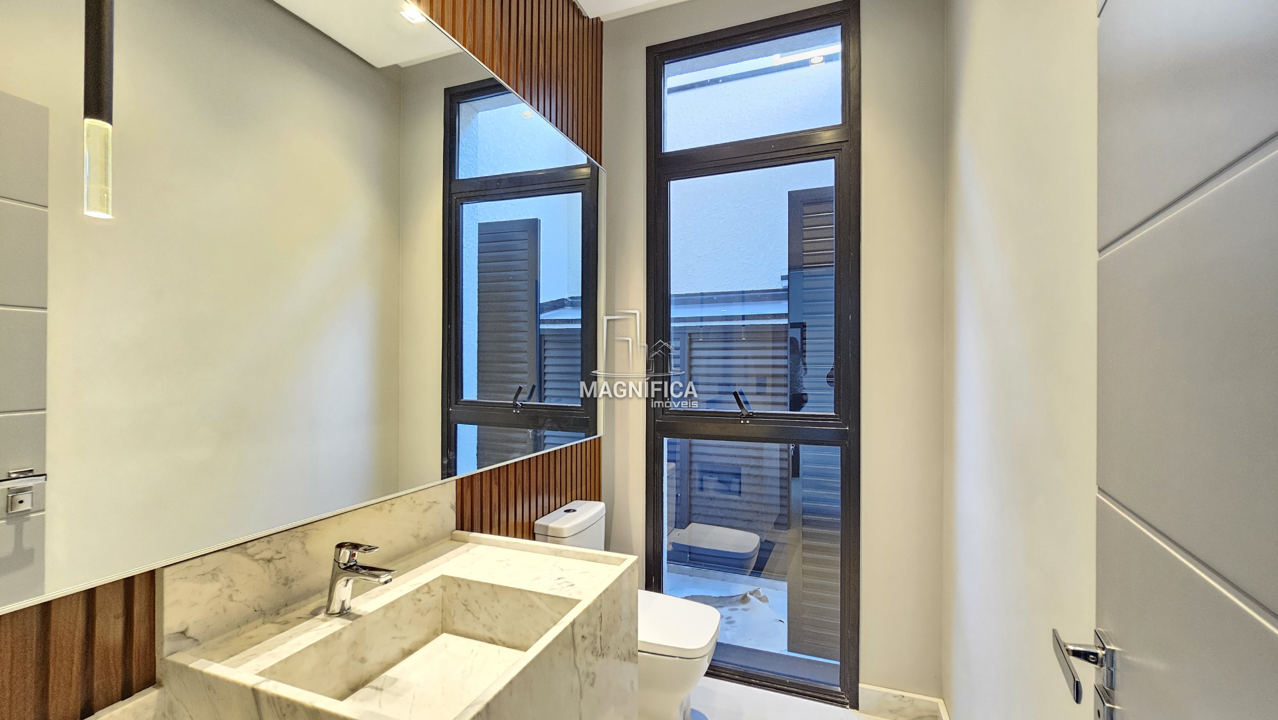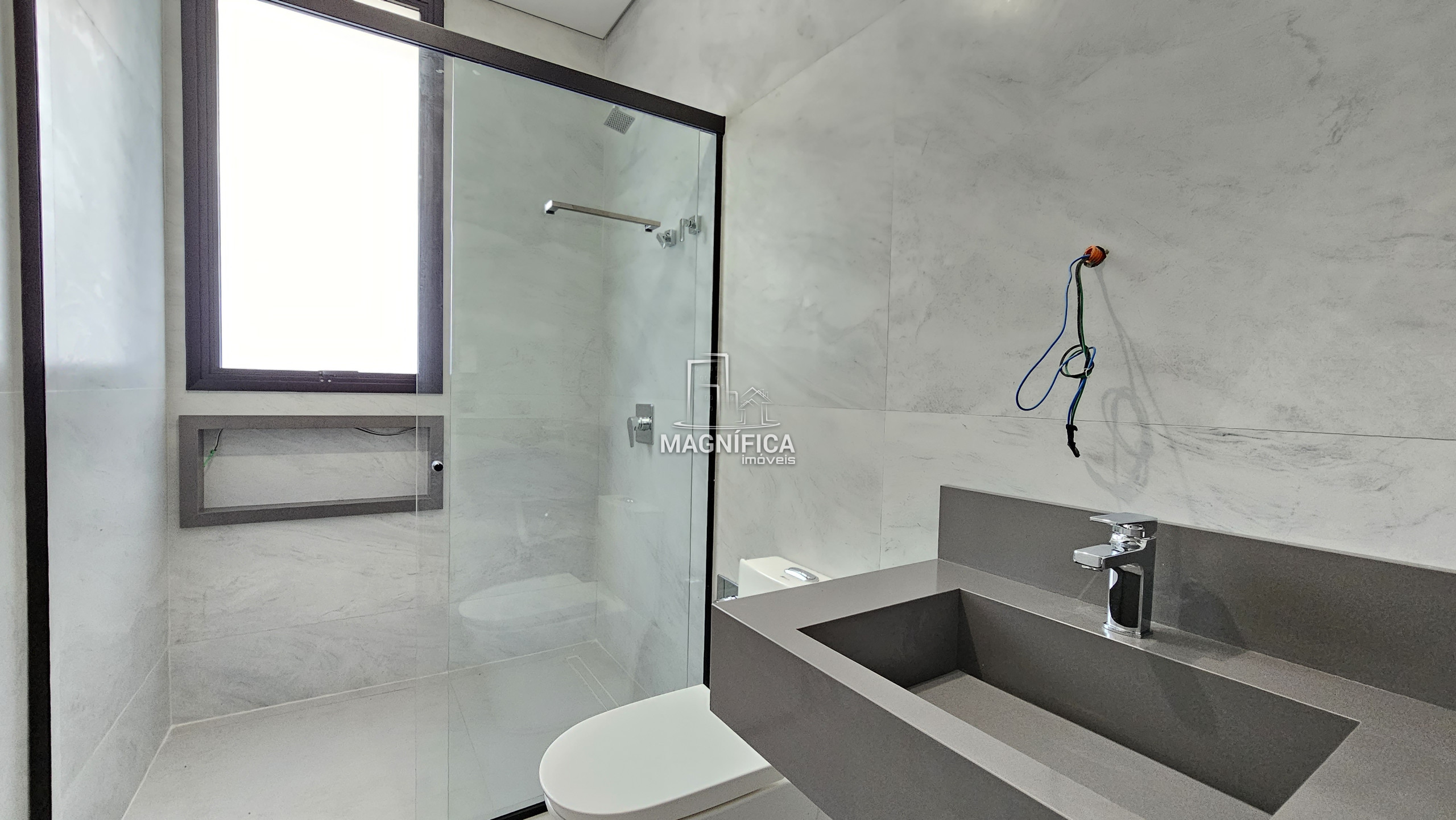 MAGNÍFICA CASA MODERNA E BEM ESTRUTURADA  Em fase final de construção Esta residência oferece preparo para geração de energia fotovoltaica, aquecimento solar, esquadrias integradas com veneziana elétrica (com controle remoto) nos quartos, escada em mármore/granito, ambientes com preparo para ar-condicionado (split) e fechadura eletrônica. Área externa com quintal, residência de alto padrão.