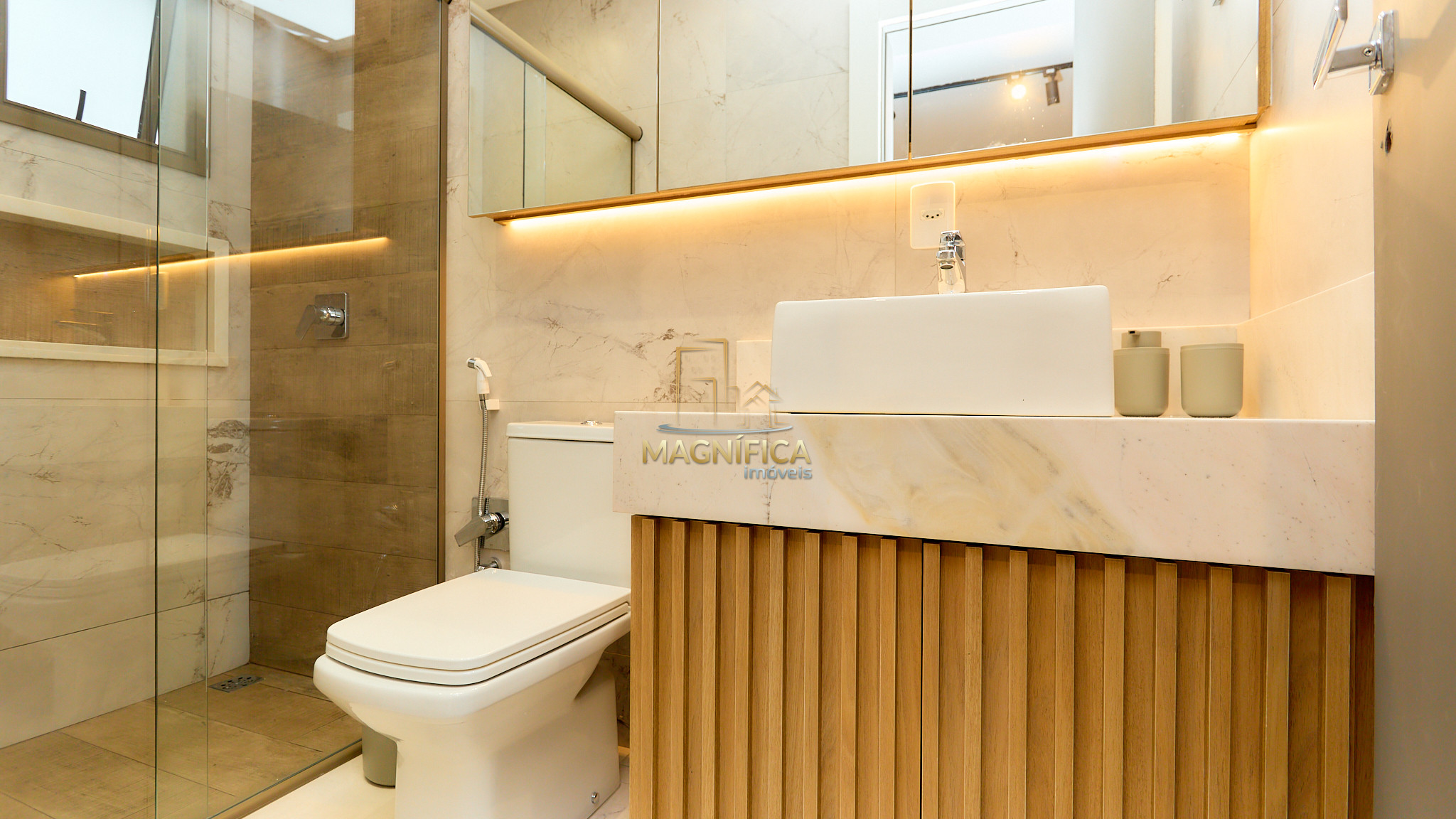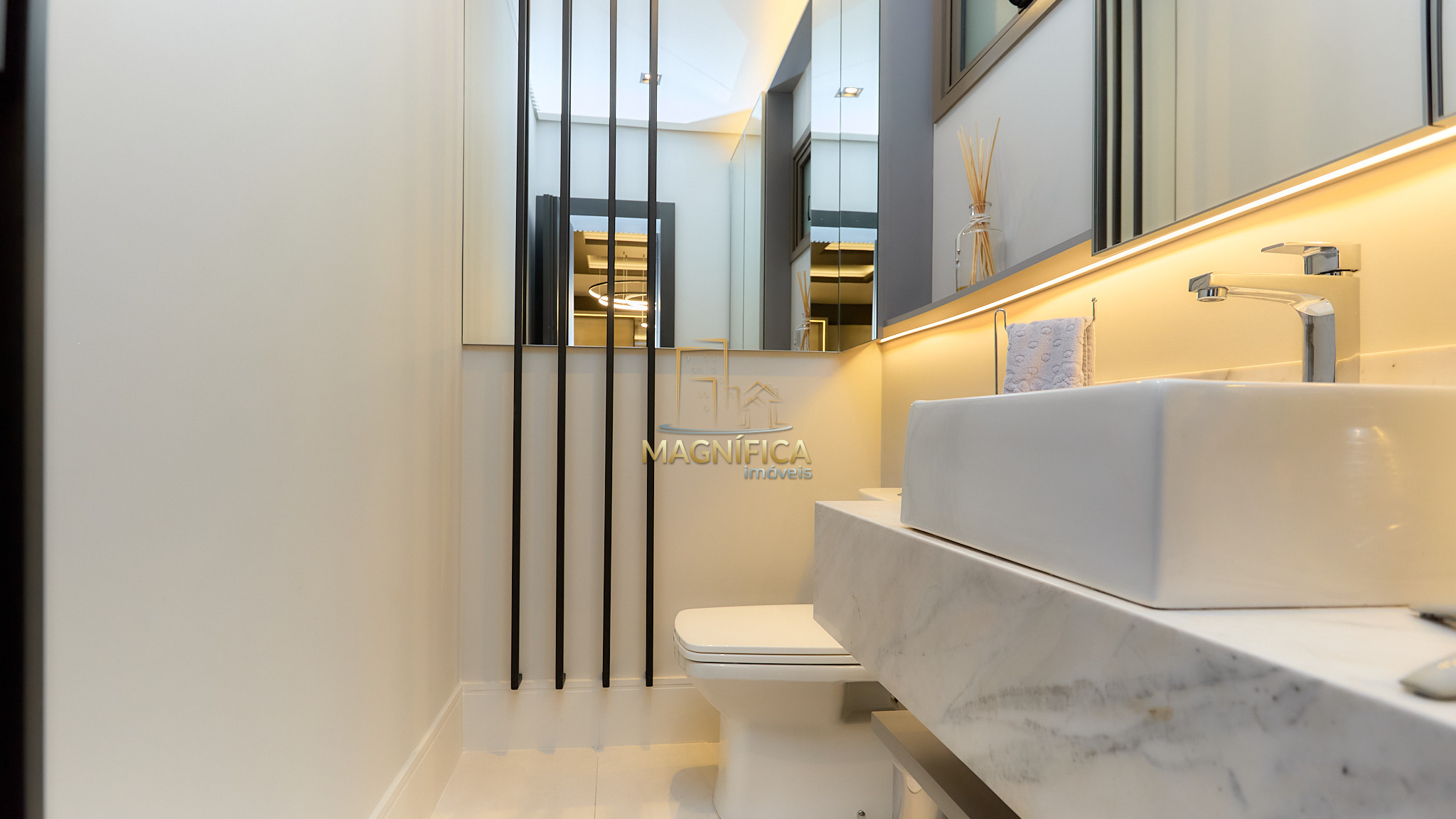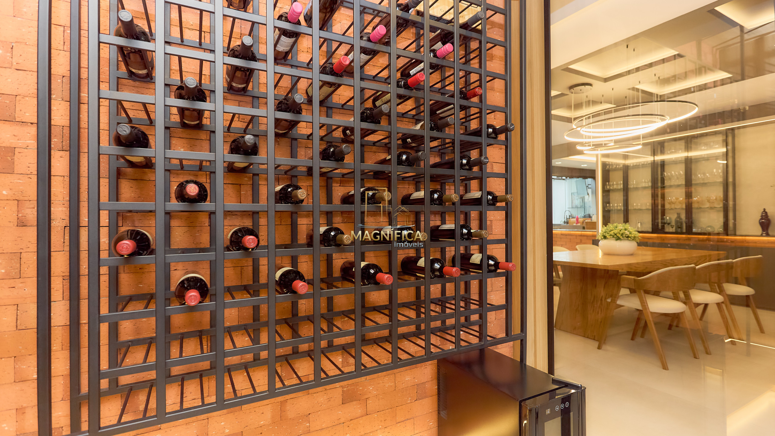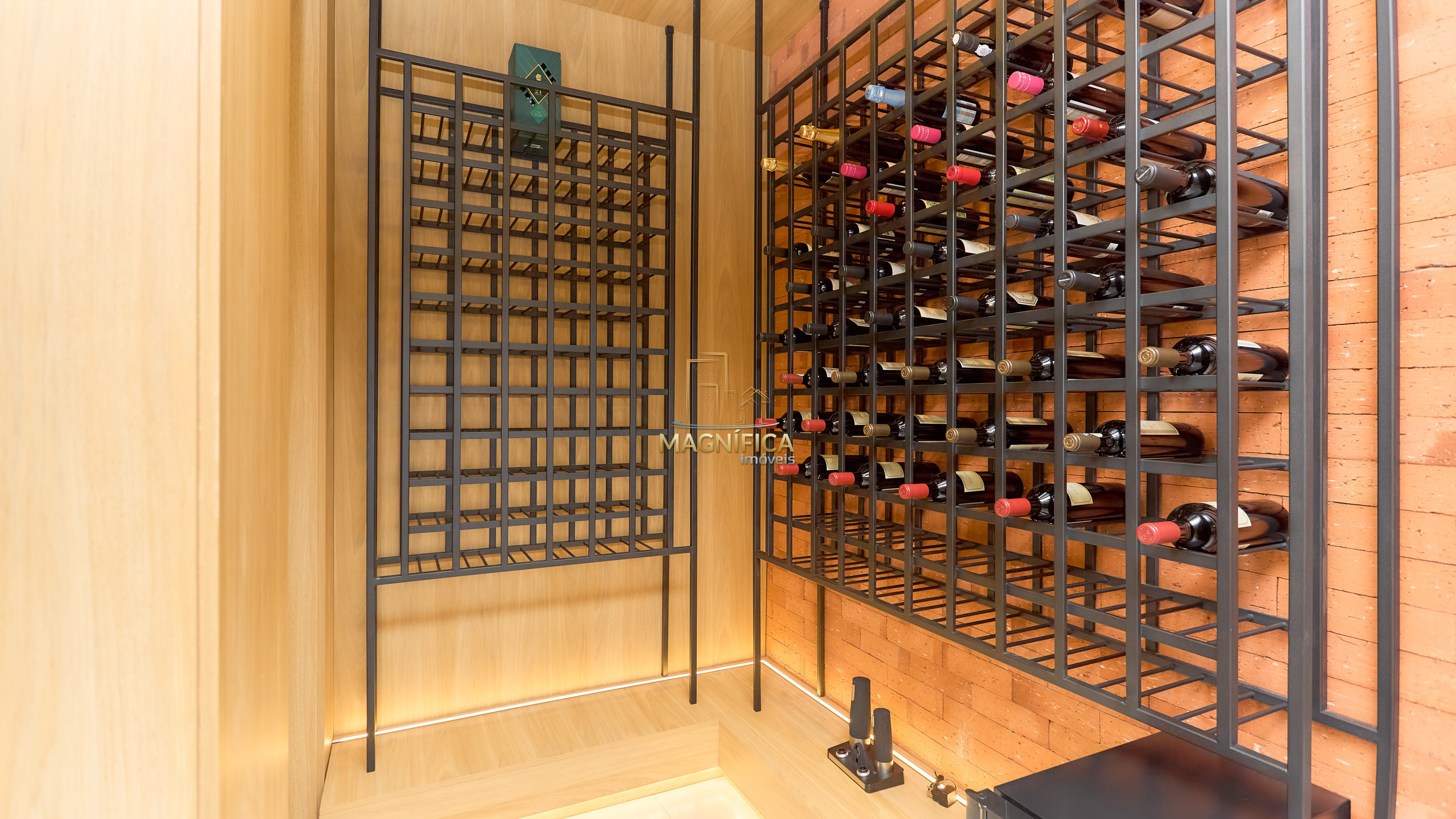 Adega LINDA e lavabo com acabamento refinado;