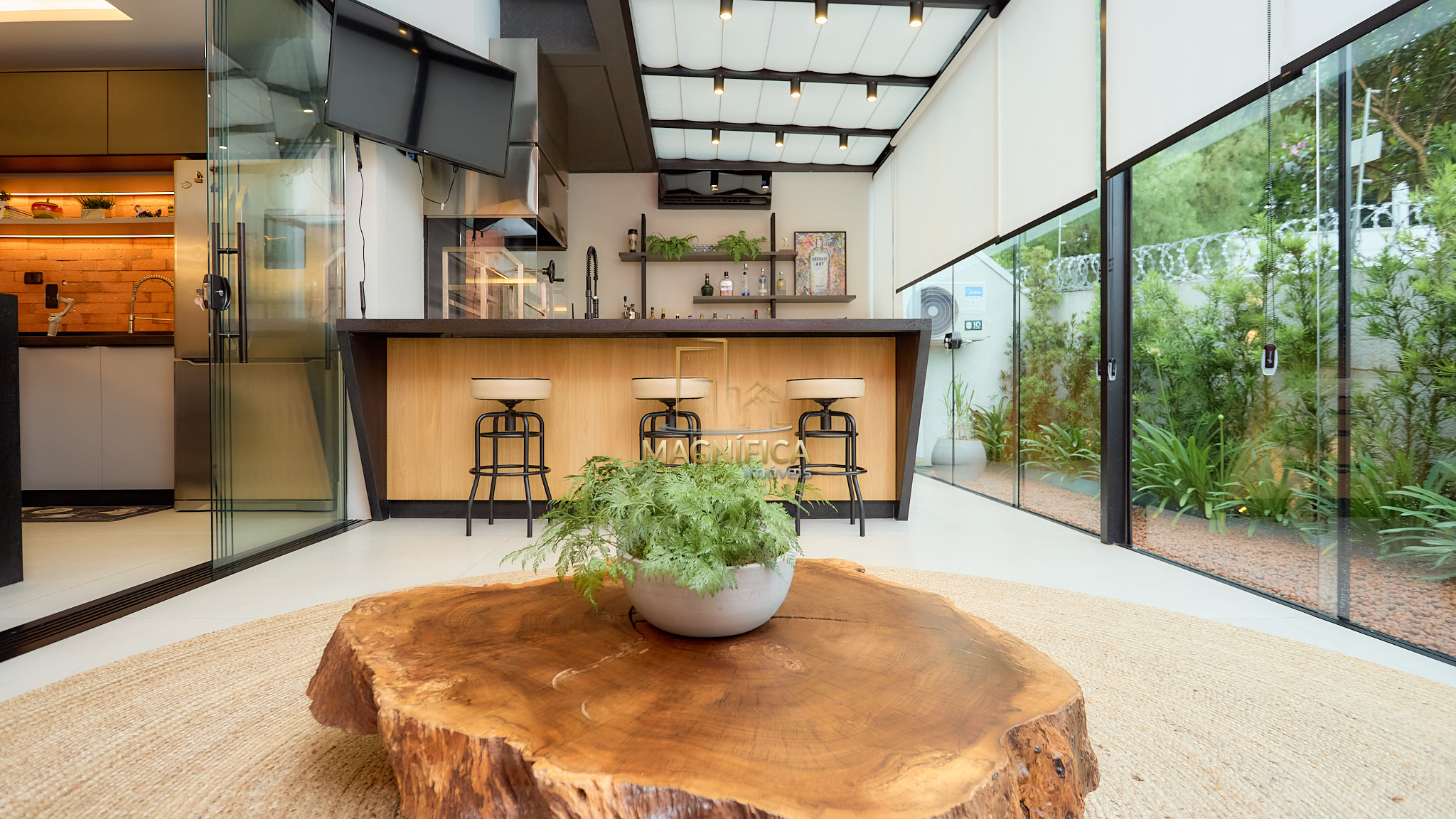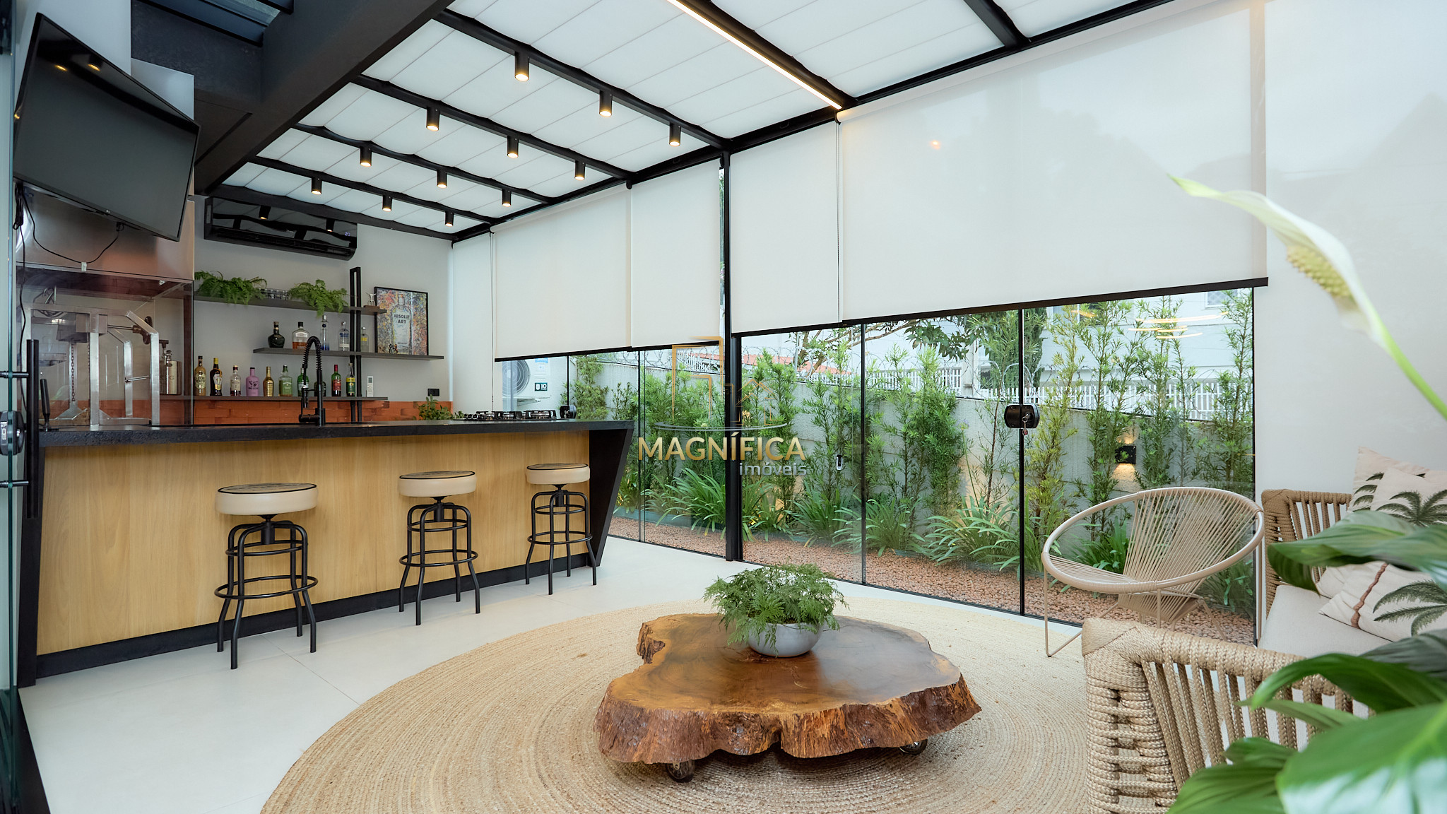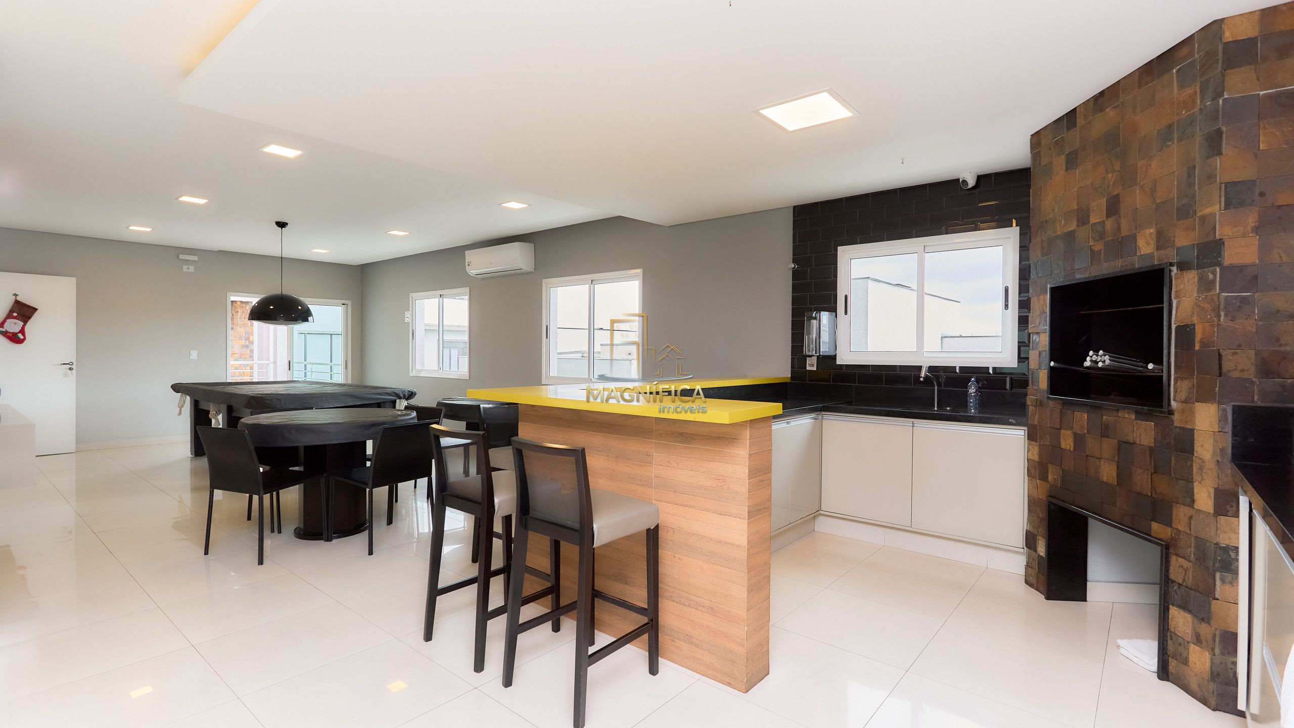 Espaço gourmet completo, com churrasqueira e integração com a área externa;
