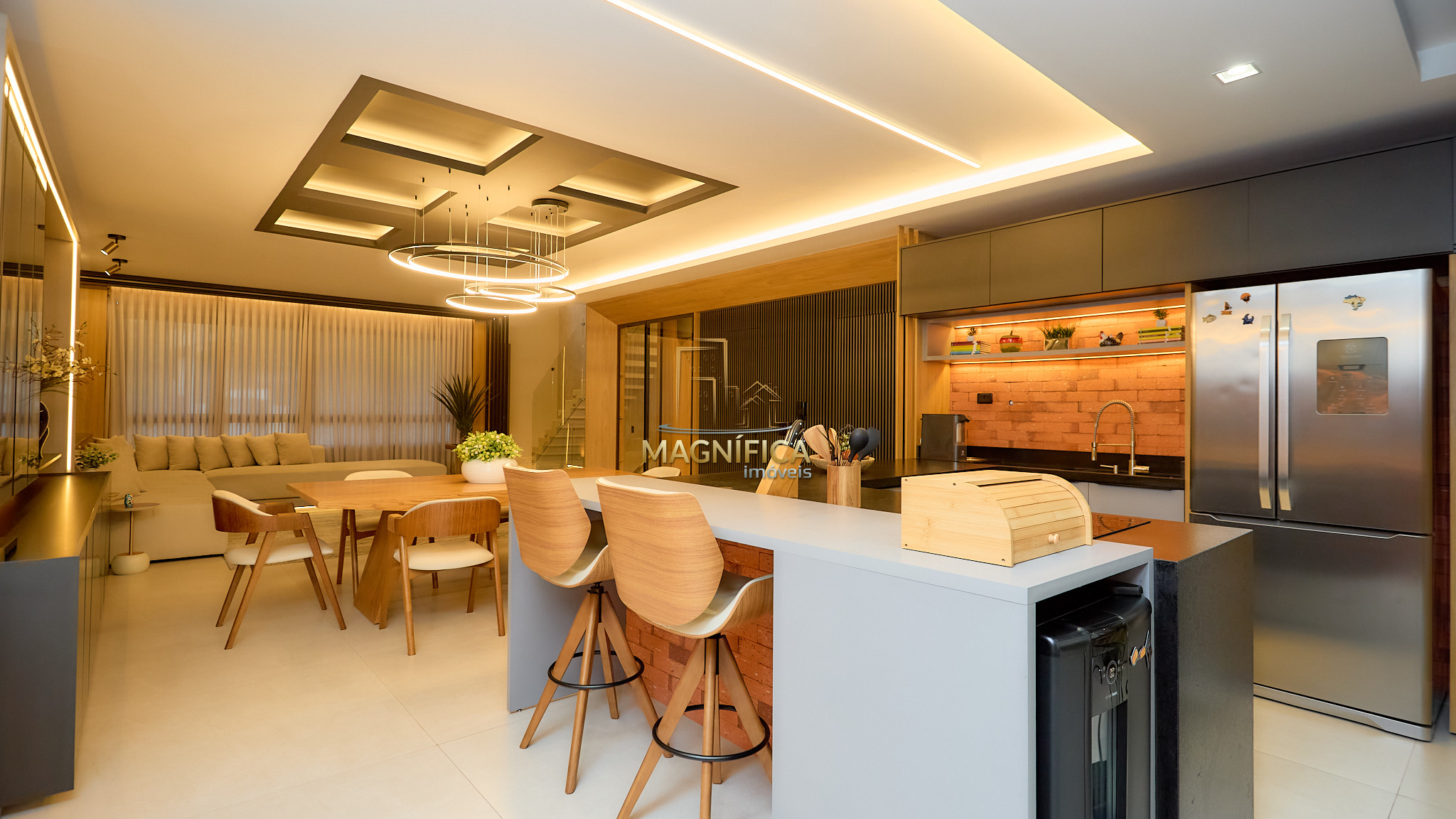 Living amplo e integrado, ideal para receber com elegância;