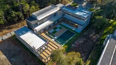 Área total de construção: Casa com 560,80m², terreno de 3.082,47m², rodeada por árvores nativas.