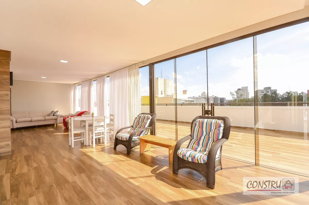 - Churrasqueira na cobertura com uma ampla varanda, bwc social, pergolado e uma linda vista para a região.