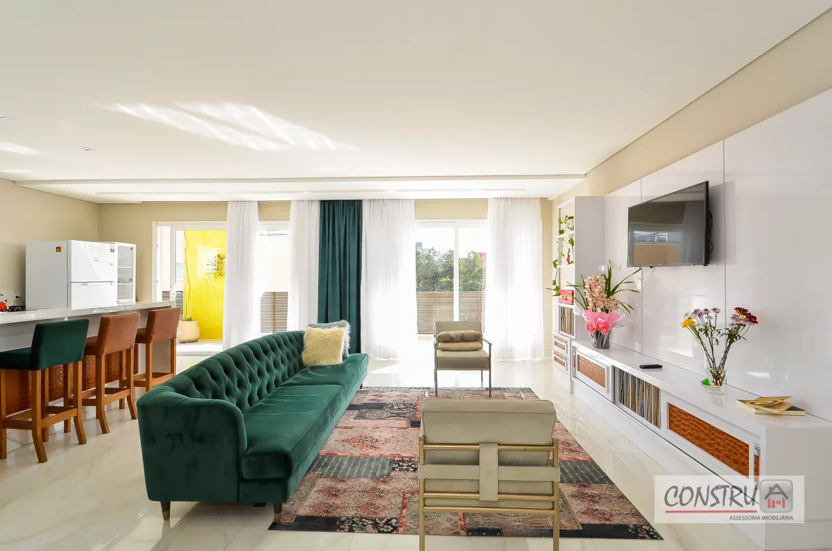 - Cobertura com 2 dormitórios, sendo 1 suíte e 1 dormitório transformado em closet, podendo ser revertido, ampla sala de banho, banheira e box separados, lavabo, cozinha conjugada com área social, lavanderia, teto em gesso, iluminação e som ambiente.