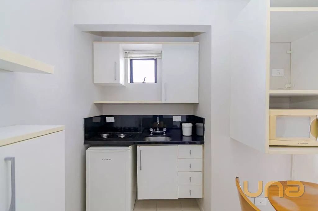 26 apartamentos, 06 em cada andar e 02 no térreo, sendo 25 apartamentos de 01 quarto, sala com cozinha conjugada, varanda e banheiro.