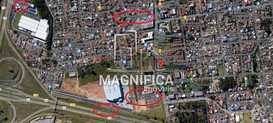 Excelente terreno, plano, no final da Rua Carlópolis, com acesso para a Rua Nicola Pelanda, no Pinheirinho. Próximo ao Supermercado Condor Umbará.