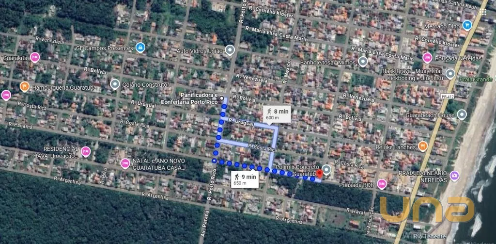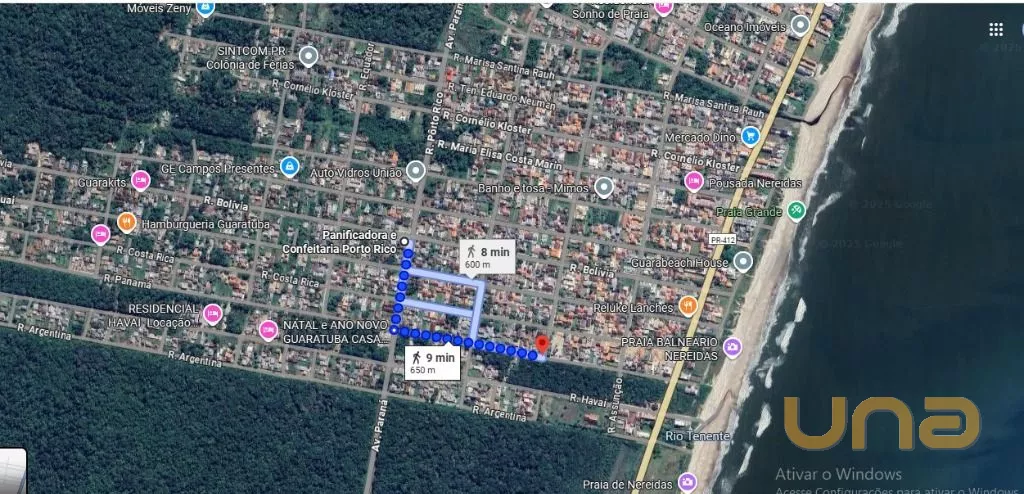 Rua Panama, a 200 metros do mar ( seguindo pelo asfalto pela Avenida Paraná, passando a Panificadora Porto Rico na terceira quadra à esquerda em direção ao mar) - Lotes 21 e 22 da Quadra 22 .